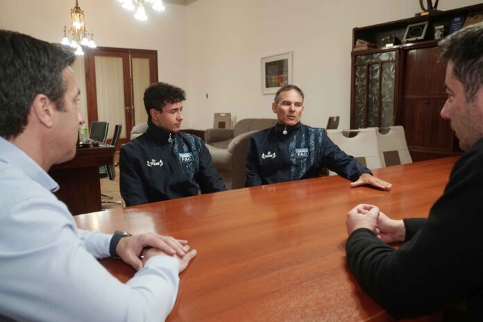 El intendente municipal, Arturo Rojas, dio la bienvenida en su despacho al necochense campeón del mundo de canotaje slalom en canoa individual durante el Mundial de Eslovaquia, Manuel Tripano, acompañado de su entrenador y padre, Javier, un par de días después de haber arribado a Necochea desde la primera gira europea del año.