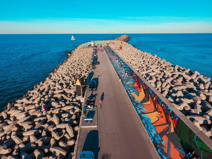 Detalle: Avistaje de lobos marinos y recorrido por el mural “Reflejos” (1000 metros de arte frente al mar).