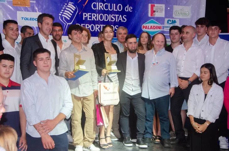 En una decisión sin precedentes, la nadadora Guadalupe Angiolini y el palista Manuel Tripano fueron premiados con el “Puente Colgante de Oro” al Deportista del Año por el Círculo de Periodistas Deportivos de Necochea, en el marco de la 25° edición de la Gran Fiesta del Deporte que se desarrolló en el Salón de Fiestas del Club Atlético Del Valle.