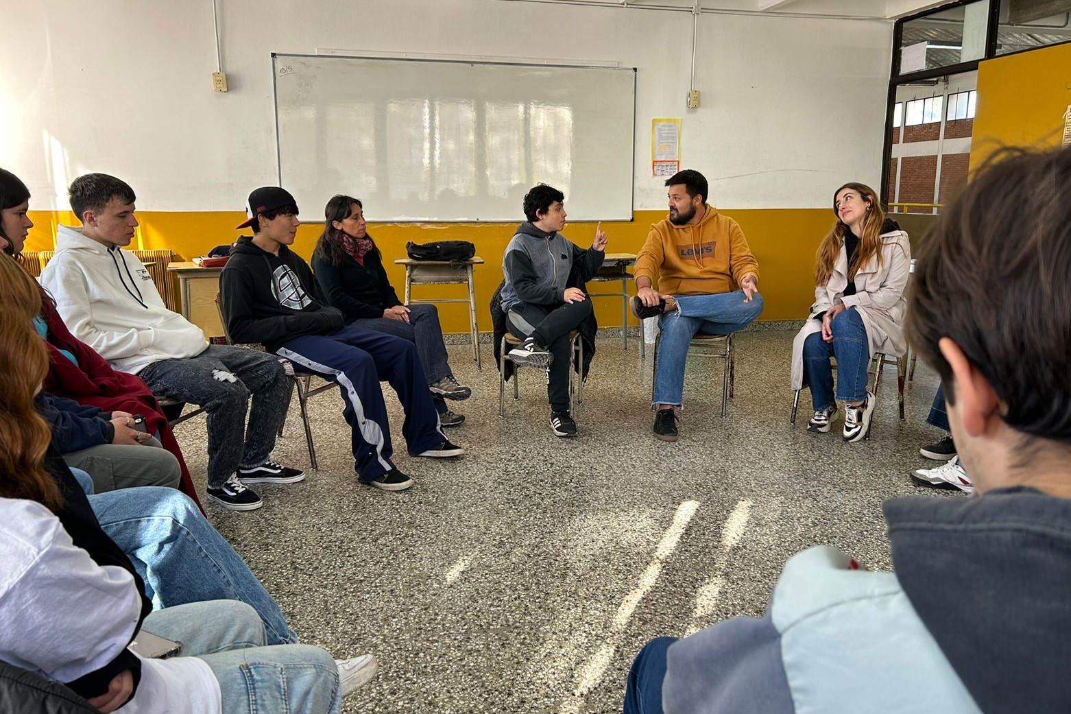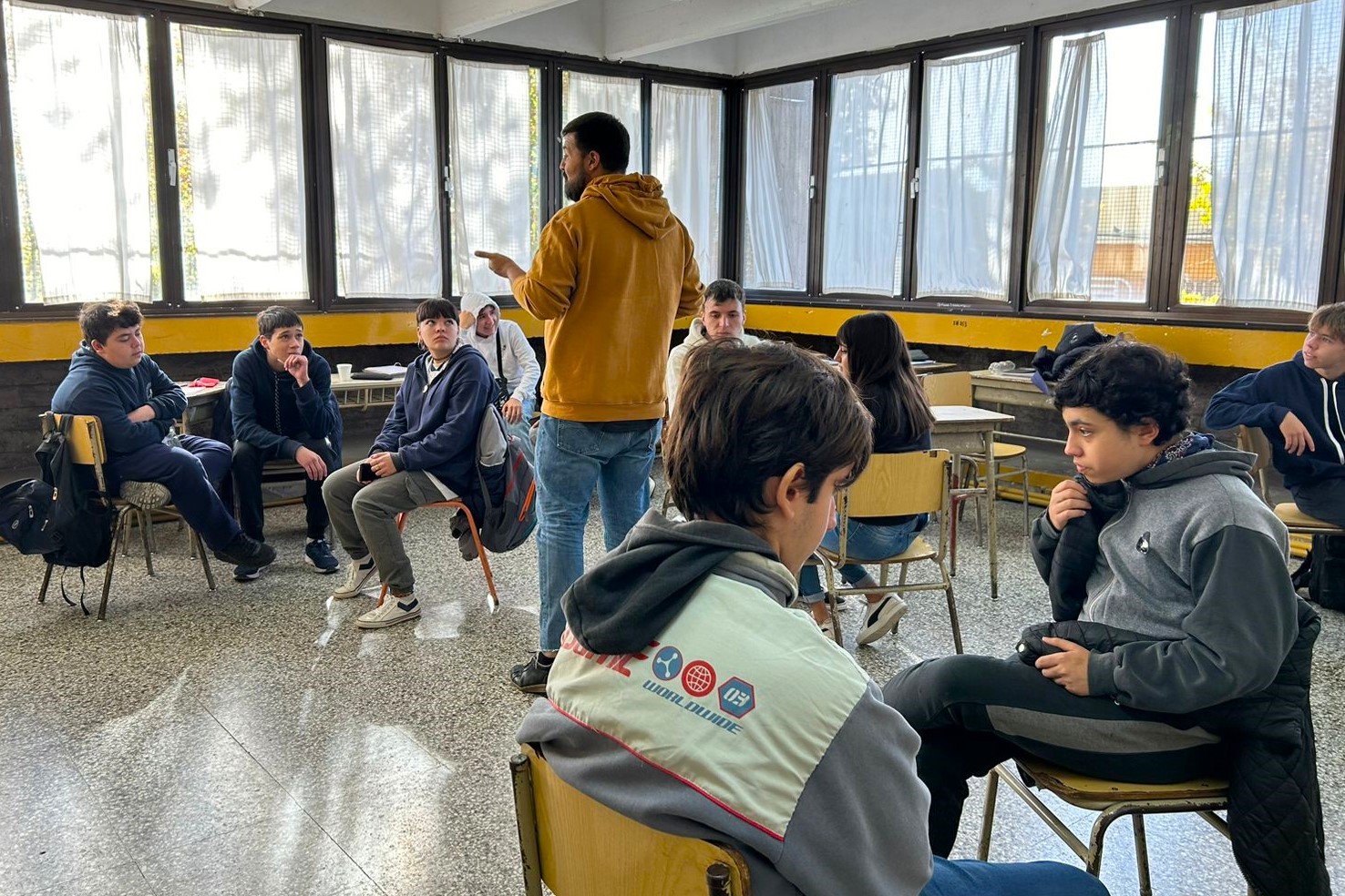 Convocado por el equipo directivo, el titular del área municipal se acercó hasta el establecimiento para organizar una jornada de integración con el alumnado, que permitió reflexionar sobre ciertos conceptos y actitudes observados en la dinámica grupal, para poder revertirlos y lograr una mejor convivencia.