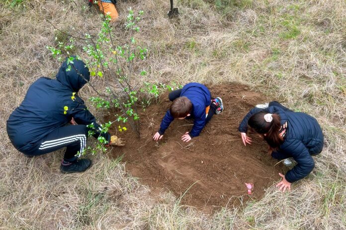 Durante la jornada, se plantaron casi 50 ejemplares de membrillos y álamos, con la participación de alumnos de 4º Grado de Primaria y de 1º y 2º año de Secundaria, acompañados por docentes, voluntarios y personal municipal.