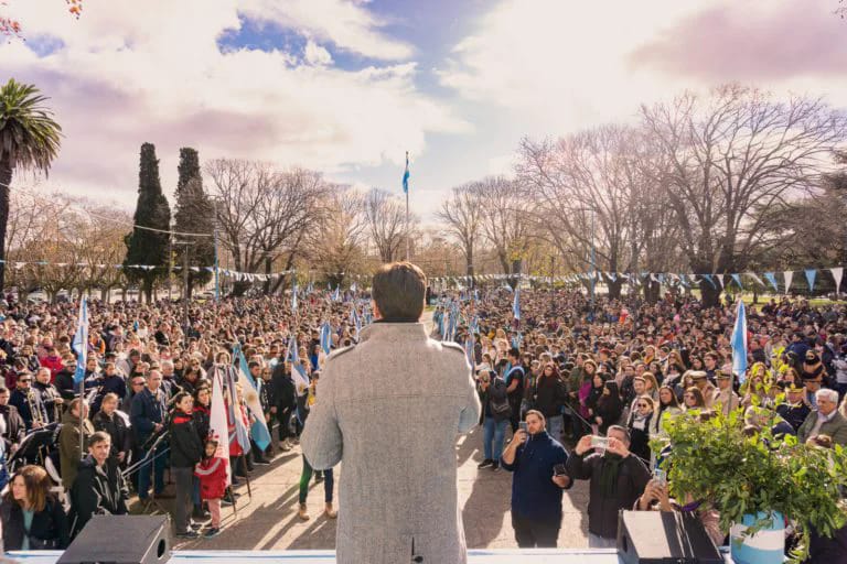 “Los colores de la bandera son los que nos unen, los que tiene nuestra historia, nuestra cultura. Los que recuerdan a nuestro próceres, a nuestros patriotas, a aquellos que dieron hasta su vida para poder construir esta querida Nación”, siguió el mandatario local.
