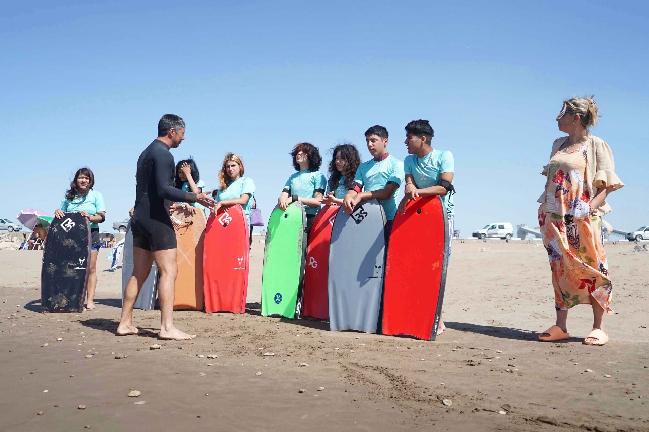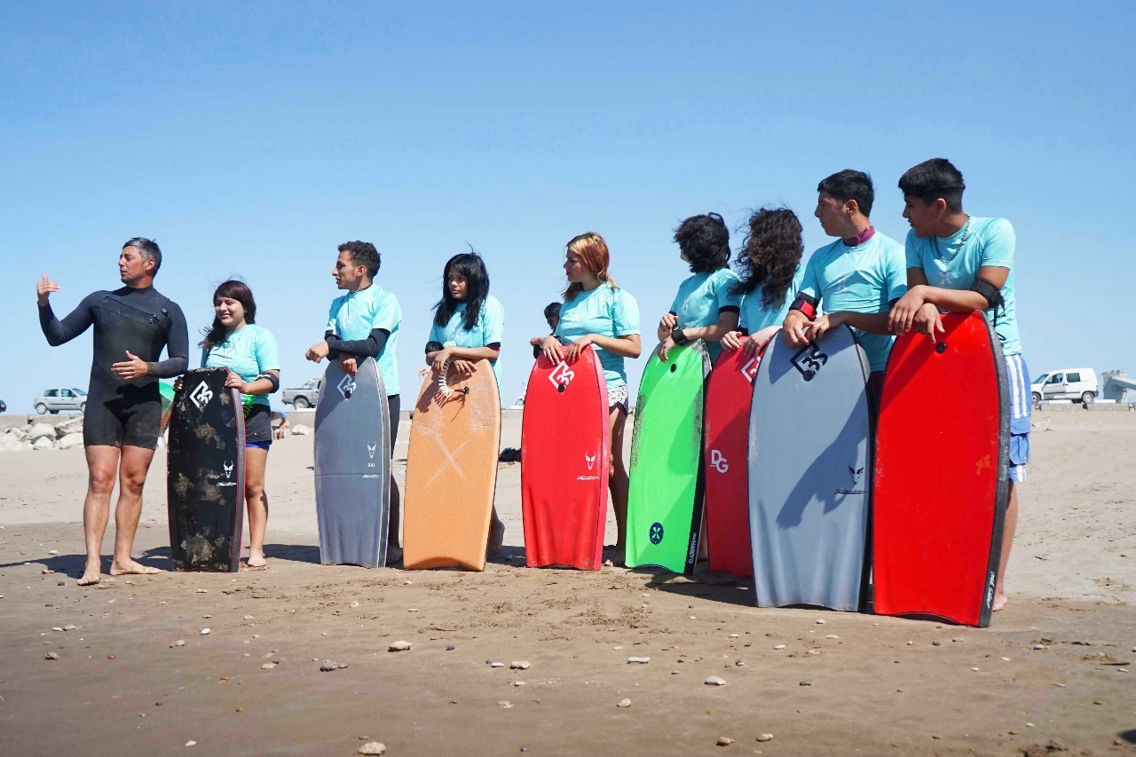 Con el impulso de la Secretaría de Desarrollo Humano y Políticas Sociales, a cargo de Sandra Antenucci, los jóvenes beneficiarios del Proyecto “Aparece cuando nos encontramos” disfrutaron este miércoles de una clínica de body en el sector de la Escollera Norte, junto a la Asociación de Bodyboard de Quequén.