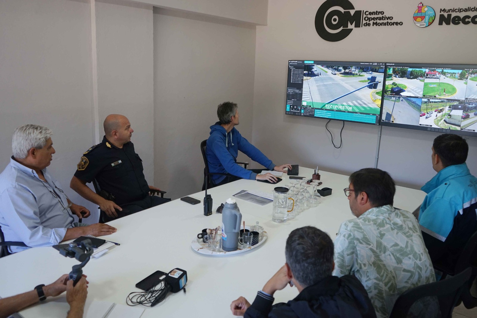 Esta mañana, el secretario de Gobierno, Jorge Martínez, junto al subsecretario de Prevención y Monitoreo, Ángel Vázquez; el comisario inspector de la Jefatura Departamental, Martín Urrestarazu; y el encargado del Gabinete Técnico Operativo (GTO) de la Comisaría Primera, Damián Blanco, ofrecieron una rueda de prensa para detallar cómo se monta y ejecuta este tipo de accionar conjunto que es de vital trascendencia para aumentar la prevención del delito.