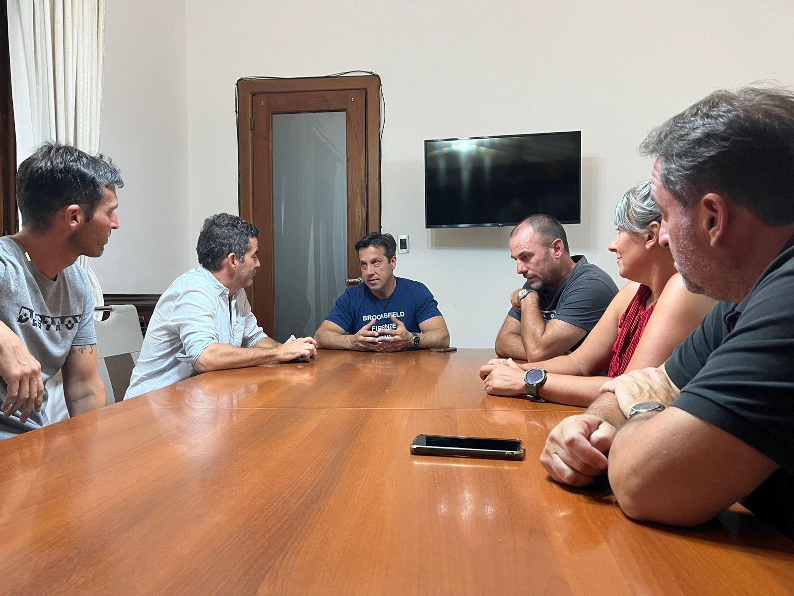 Durante el encuentro en el despacho municipal, estuvieron presentes los profesionales Daniela Cangiano, Diego Hernández Rubio, Diego Álvarez, Gabriel Sánchez y Luis Villarruel; recibidos por el Intendente; el presidente del Concejo Deliberante, Guillermo Sánchez; y el secretario de Turismo y Desarrollo Productivo, Matías Sierra.