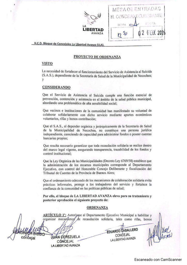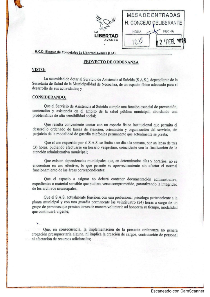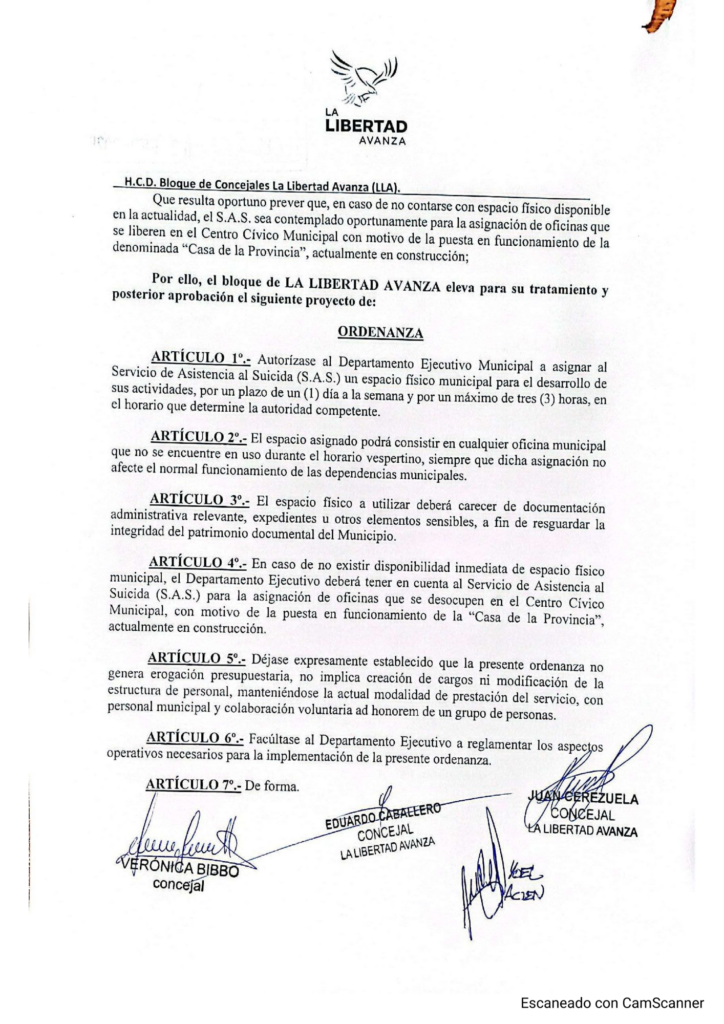 Días pasados en el Concejo Deliberante se recibió a referentes del Servicio de Asistencia al Suicida, quienes plantearon la necesidad de contar con un espacio físico definitivo. Desde el Bloque de La Libertad Avanza se abocaron a la creación de un documento legislativo que permita al departamento ejecutivo a definir un lugar a fin de acompañar al reclamo.