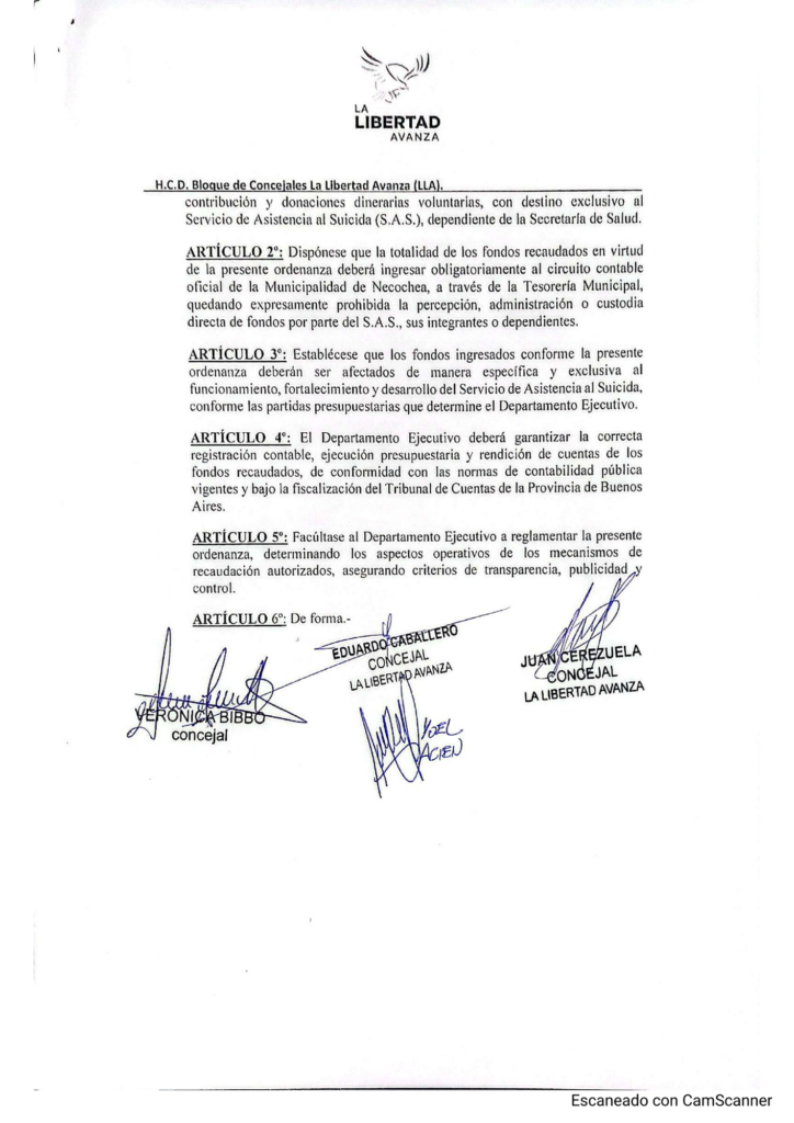 Destacando desde el espacio libertario la importancia del trabajo de los integrantes del S.A.S. para toda la comunidad, por lo cual se presentó el siguiente proyecto de ordenanza: