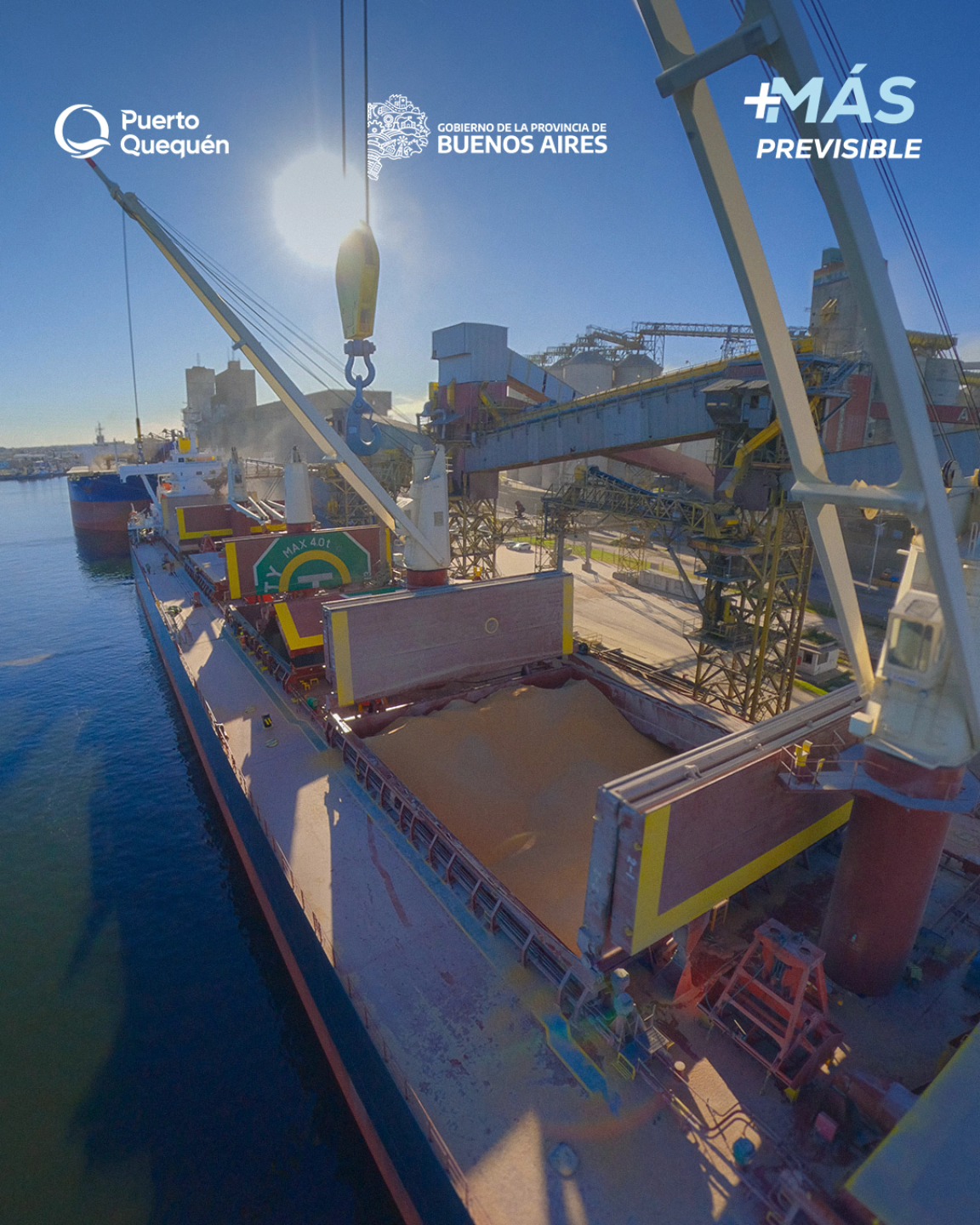 Puerto Quequén empieza la semana operando en cuatro muelles, con embarques de cebada, soja y maíz hacia Brasil, China, Filipinas y Malasia.