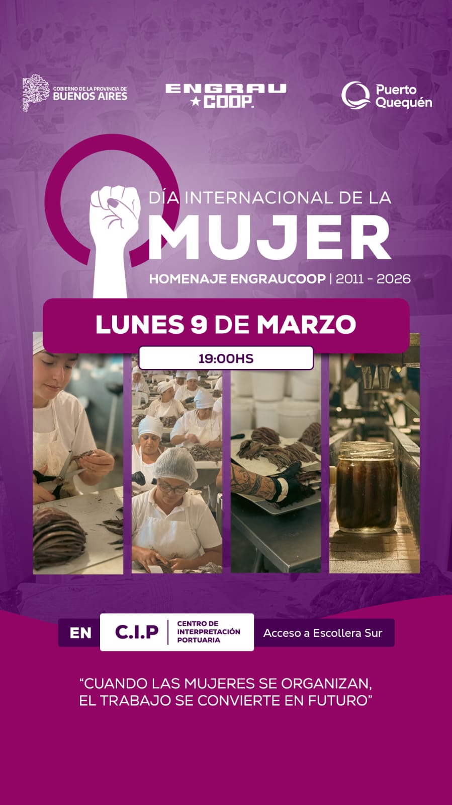 En el marco del Día Internacional de la Mujer, el Consorcio de Gestión del Puerto de Quequén invita a usted a participar de la inauguración de la muestra homenaje a las mujeres que conforman la Cooperativa Engraucoop.