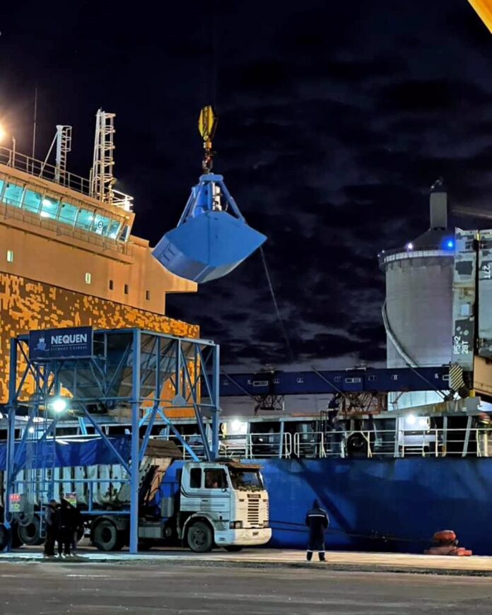 En la margen de Necochea, la importación de fertilizantes también continúa a buen ritmo. El buque ZYHY CHUANG XIN descarga 5.800 toneladas de MAP en el giro 10; al tiempo que en el giro 12, se desestiban del buque GULLHOLMEN ISLAND 11.350 toneladas de DAP.