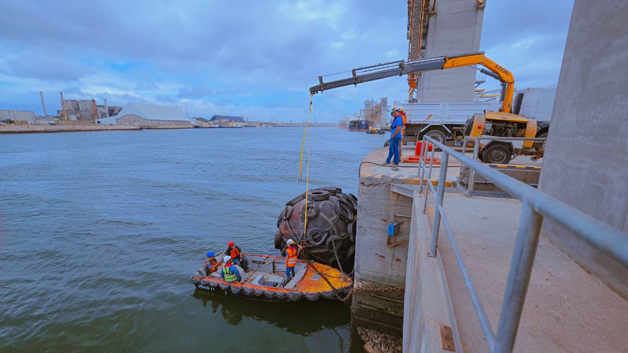 Las tareas tuvieron como objetivo garantizar el correcto funcionamiento de estos dispositivos, fundamentales para la seguridad en las maniobras de atraque de los buques, ya que cumplen la función de amortiguar el contacto entre las embarcaciones y los muelles.