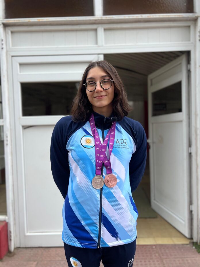 Guadalupe Angiolini, la nadadora de 16 años del Programa “Alto Rendimiento” de Puerto Quequén, entrenada en el Club Huracán por Claudio Castagnari, fue recibida en institución luego de su exitosa participación en el Mundial Escolar de Natación U18 en Barhein.