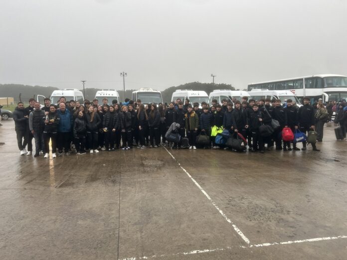 En esta mañana gris de lunes, el Polideportivo Municipal “Edgardo Hugo Yelpo” amaneció repleto de ilusiones con una masiva delegación de Necochea que viaja rumbo a Mar del Plata para las finales de los 34º Juegos Bonaerenses a lo largo de esta semana.